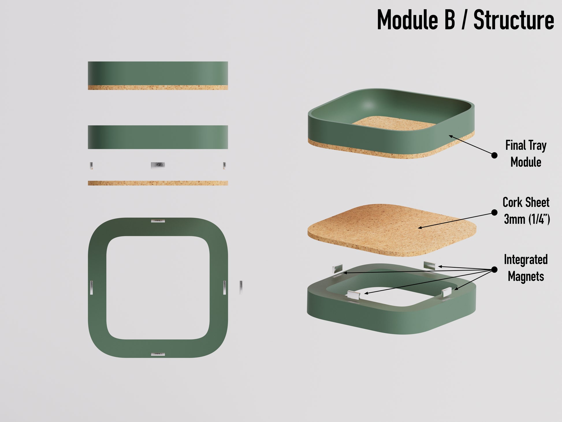 - Premium Scratch-Free Cork: Each module is thoughtfully lined with a soft, natural cork base. This not only protects your desk surface from scratches but also provides a gentle, noise-dampening resting place for your items.