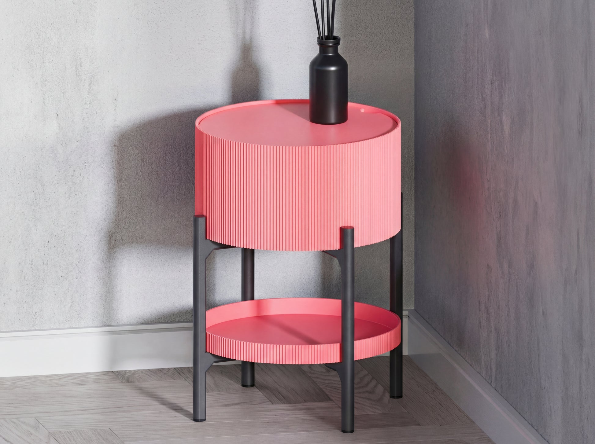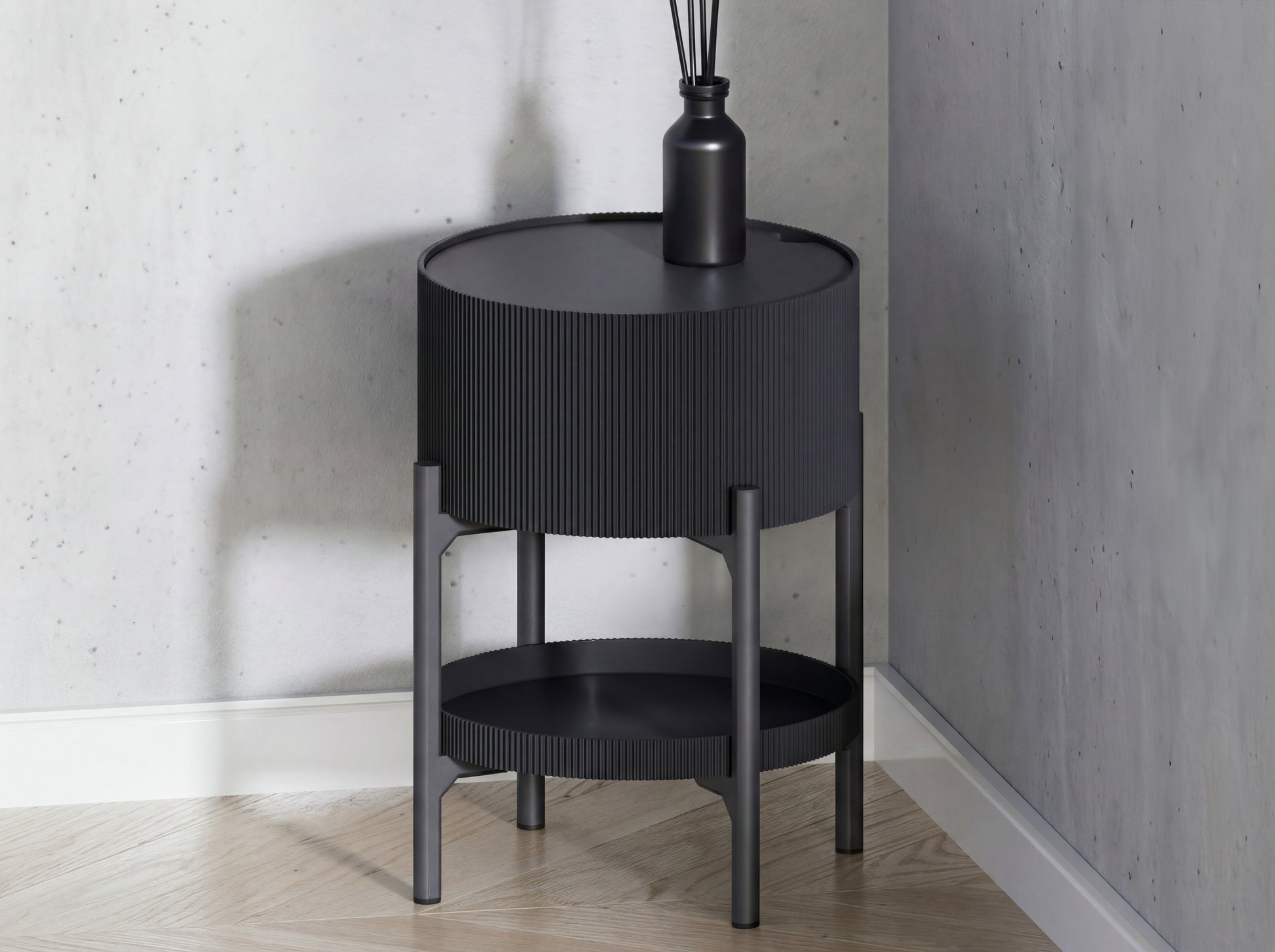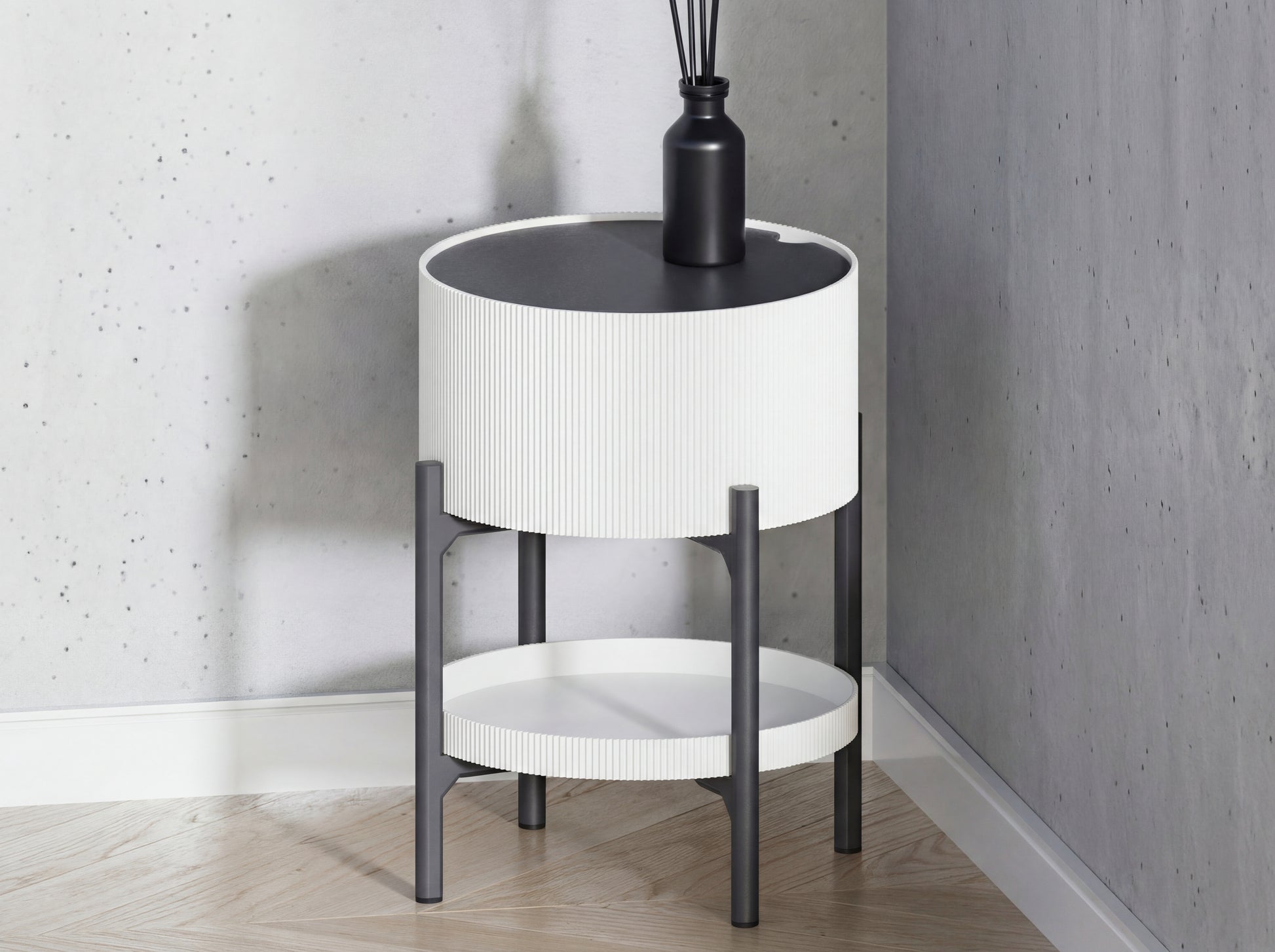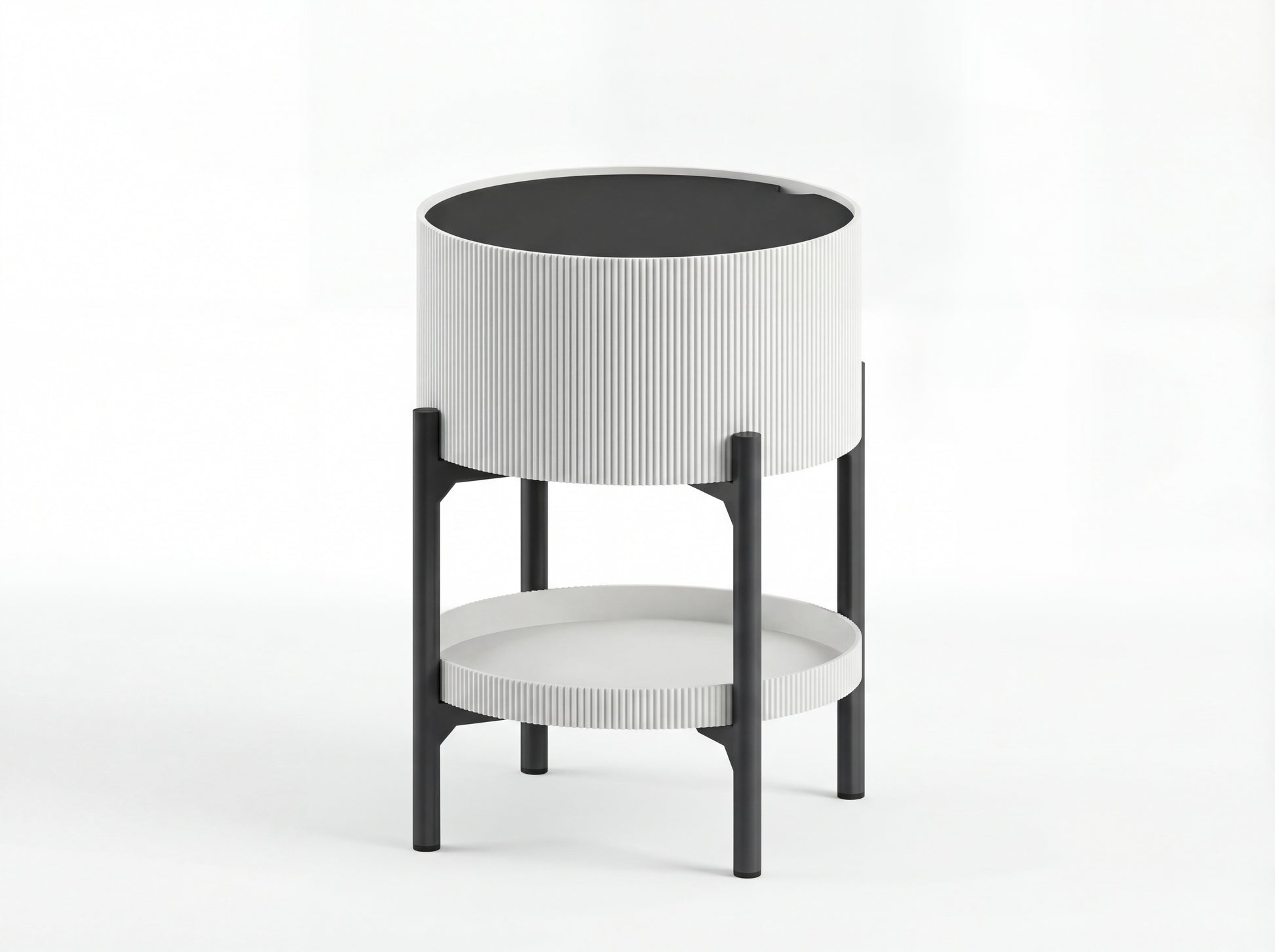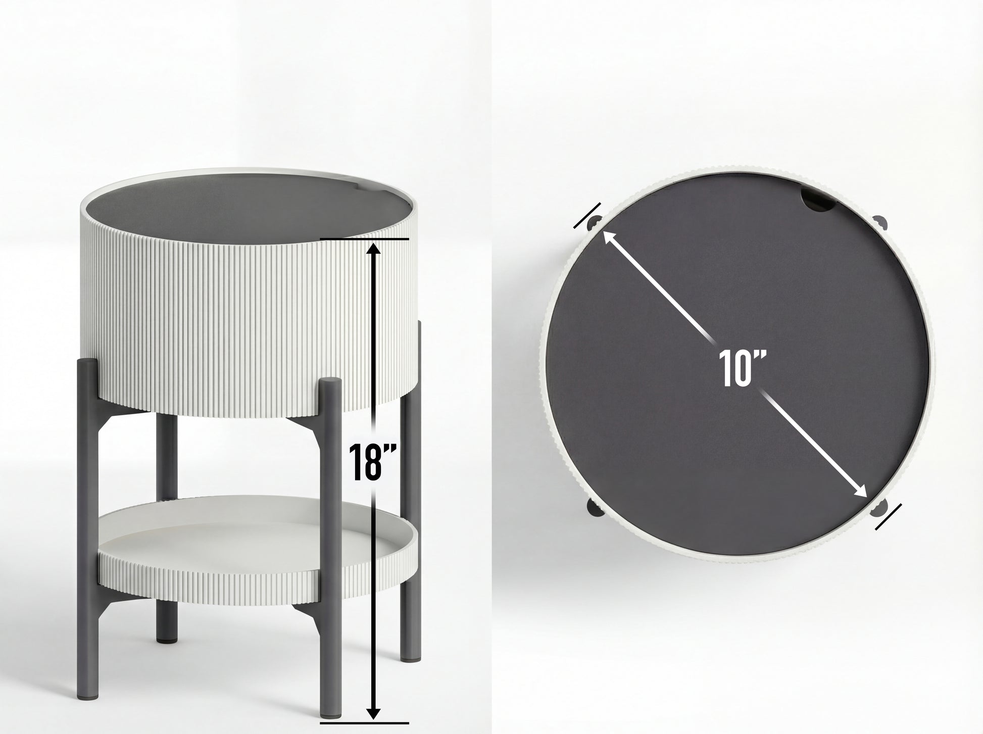 A masterclass in functional design, this round side table solves small-space storage issues without sacrificing style. The vertical ribbed exterior offers a high-end look, while the dual storage options make it a practical addition to bedrooms, living rooms, or home offices.
