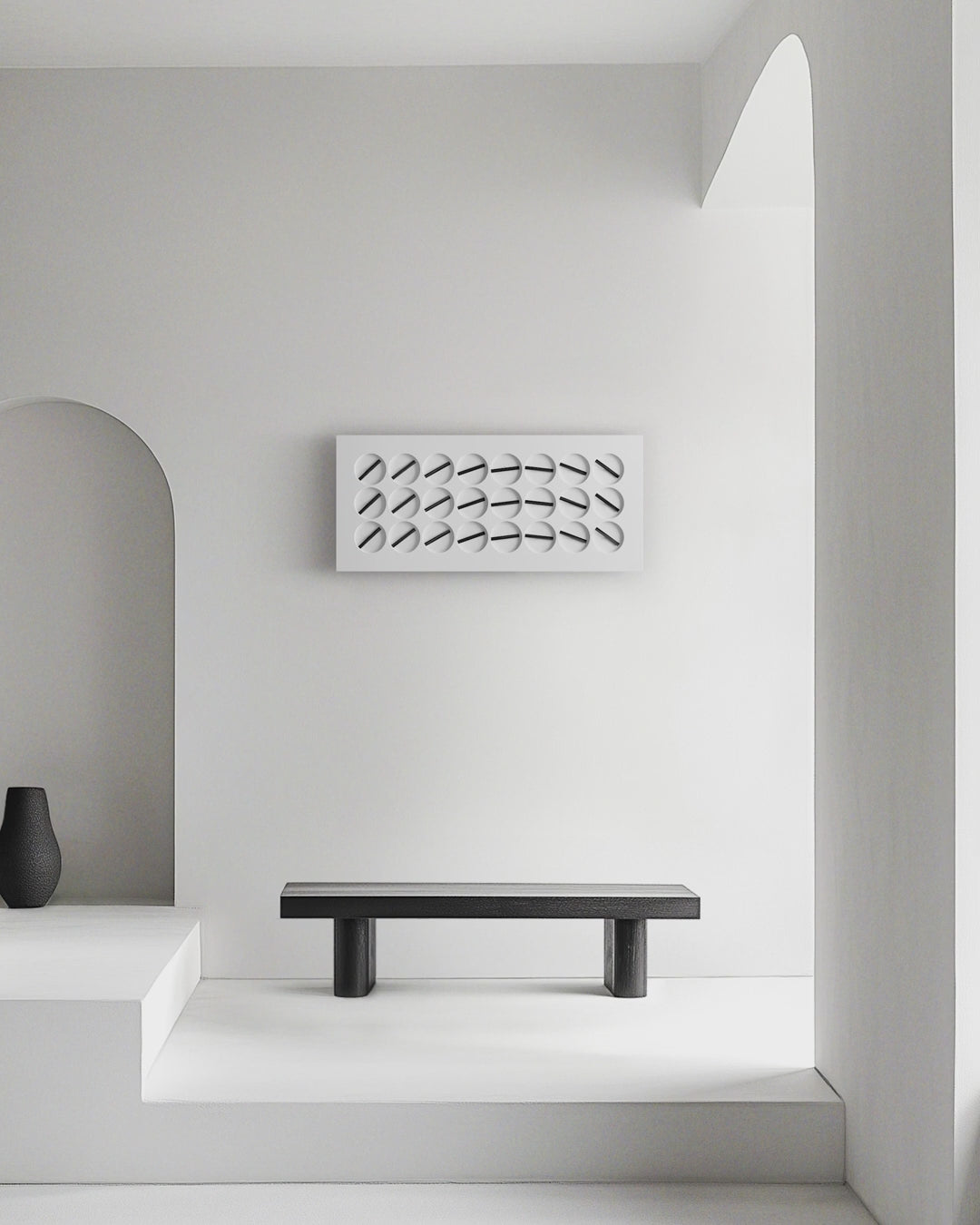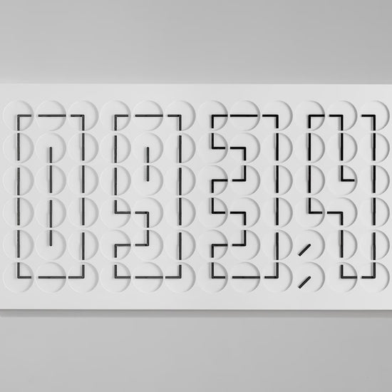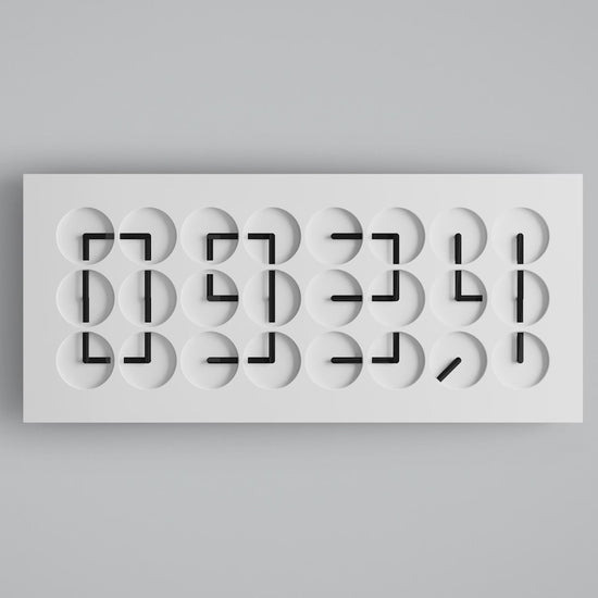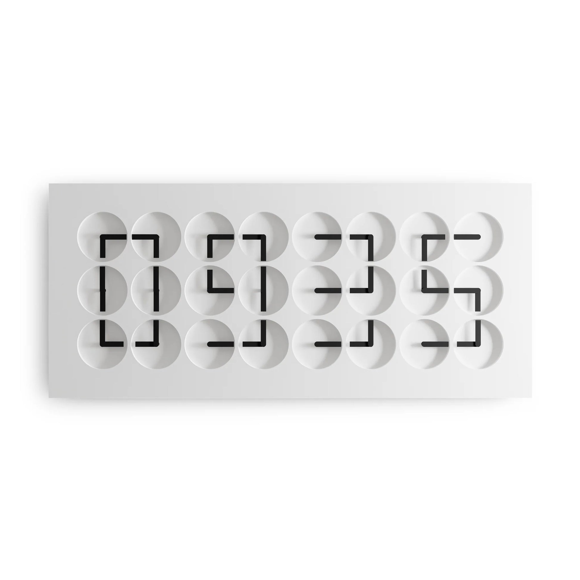 The Wall Clock 24 is a world-renowned kinetic sculpture that recontextualizes time through an ingenious marriage of analog and digital design. Created by the pioneering Los Angeles-based studio Unikam, this iconic piece consists of 24 individual analog clocks that move in a perfectly synchronized choreography.